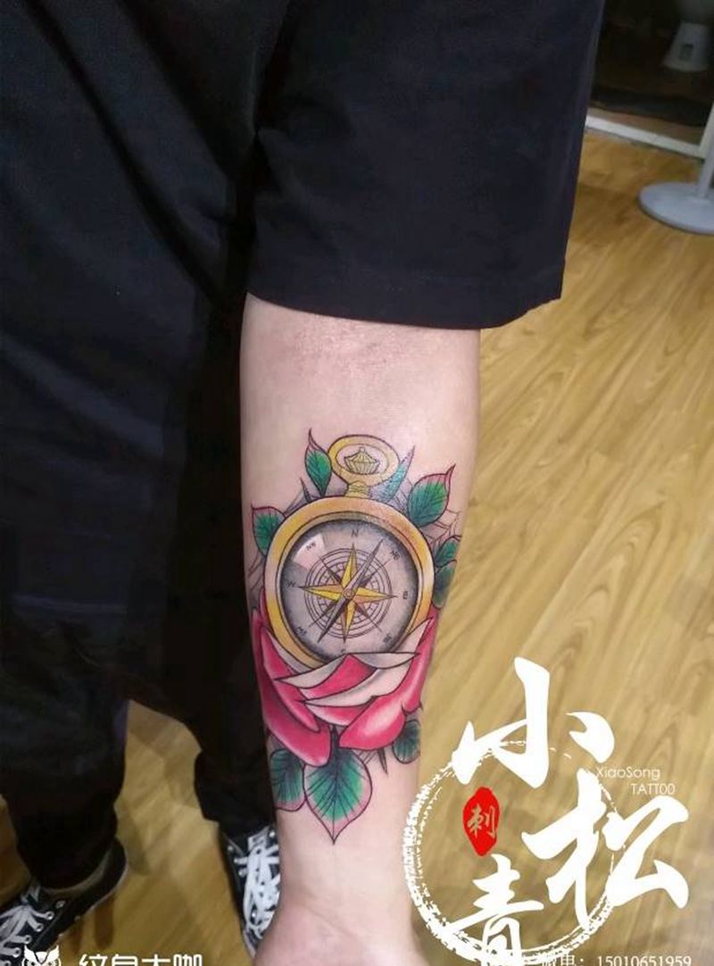 欧美指南针纹身图片_手臂Old School欧美写实纹身图案
