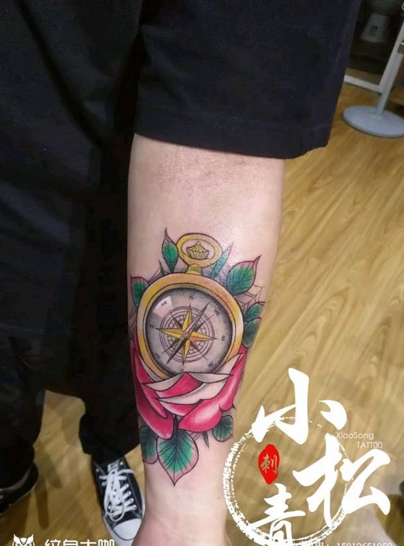 欧美指南针纹身图片_手臂Old School欧美写实纹身图案