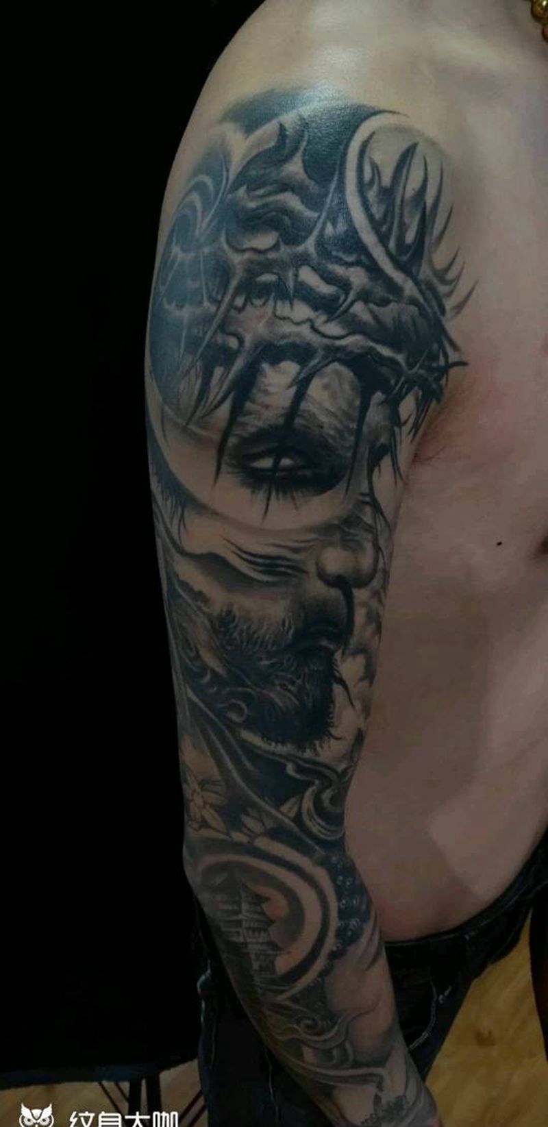 当前位置: 首页 >北京市纹身店-小松刺青工作室纹身图案>欧美与传统结合的完美花臂纹身图片_