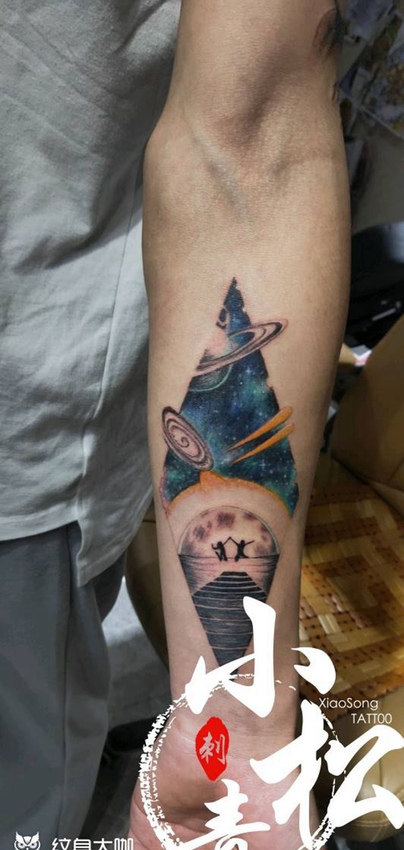 当前位置: 首页 >北京市纹身店-小松刺青工作室纹身图案>星空纹身图片_手臂New School点刺纹身图案