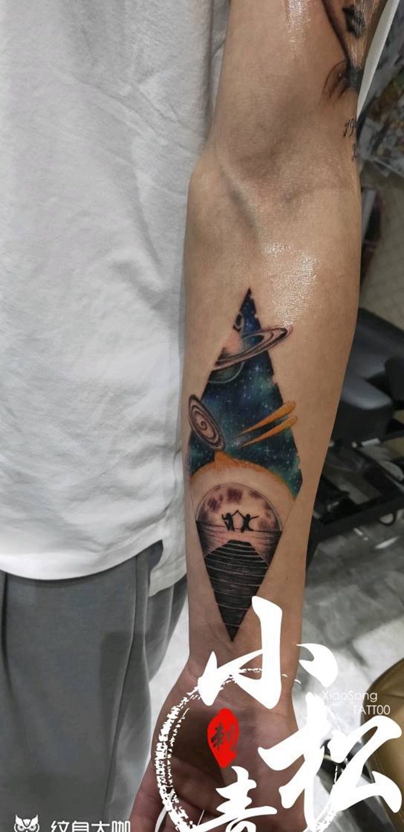 当前位置: 首页 >北京市纹身店-小松刺青工作室纹身图案>星空纹身图片_手臂New School点刺纹身图案