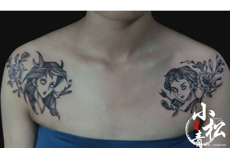 最敏感位置纹身纹身图片_胸部点刺Old School纹身图案