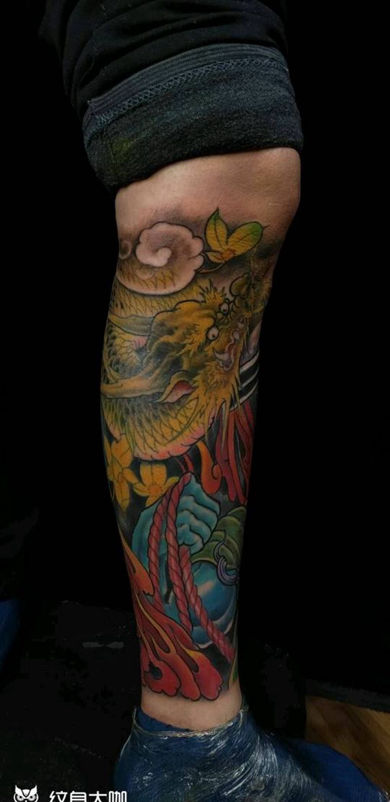 • T网红王老大花腿龙纹身图片_腿部新传统纹身图案