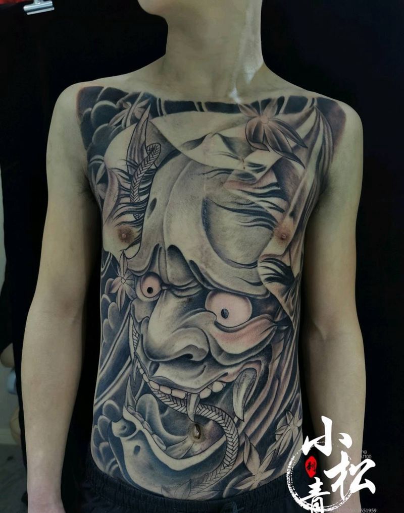 前胸大般若纹身图片_胸部新传统纹身图案