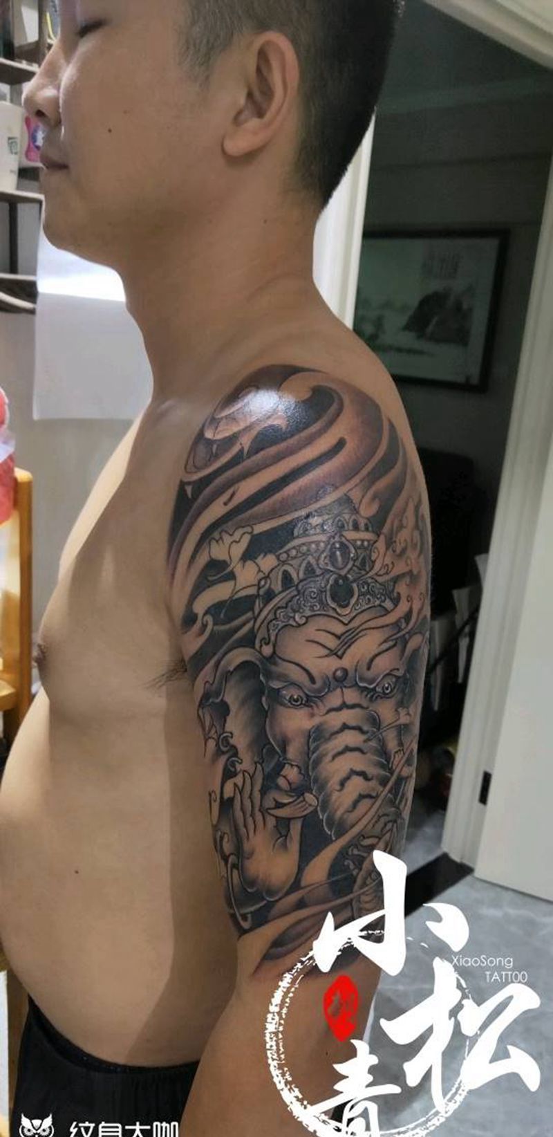 当前位置: 首页 >北京市纹身店-小松刺青工作室纹身图案>大臂象神纹身图片_手臂新传统纹身图案