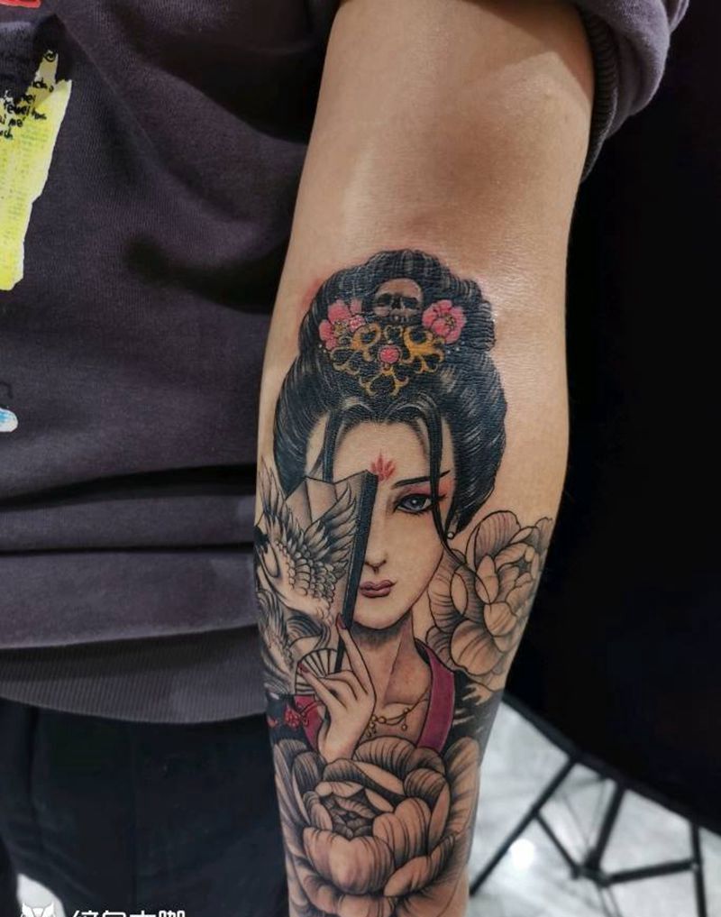 当前位置: 首页 >北京市纹身店-小松刺青工作室纹身图案>艺伎纹身图片_手臂新传统纹身图案