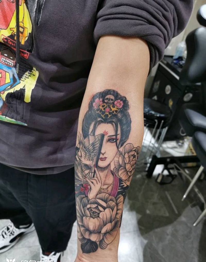 当前位置: 首页 >北京市纹身店-小松刺青工作室纹身图案>艺伎纹身图片_手臂新传统纹身图案