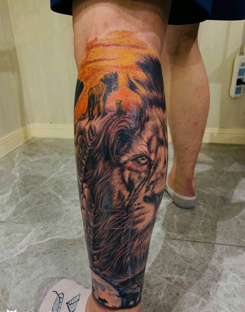当前位置: 首页 >北京市纹身店-小松刺青工作室纹身图案>欧美写实包小腿纹身图片_腿部欧美写实纹身图案