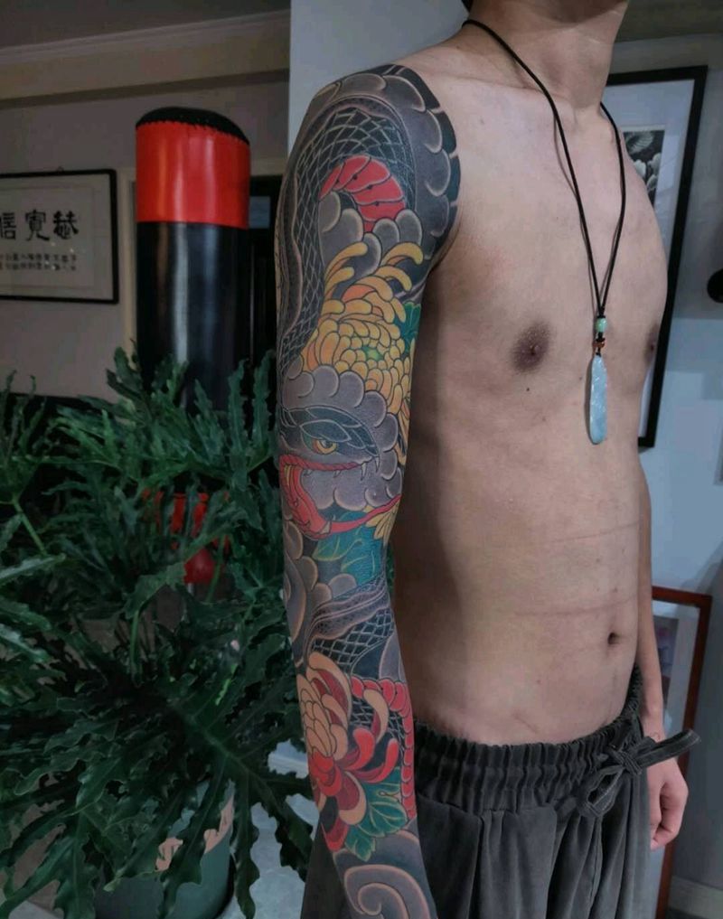 当前位置: 首页 >北京市纹身店-小松刺青工作室纹身图案>日式老传统花臂纹身图片_手臂老传统纹身图案