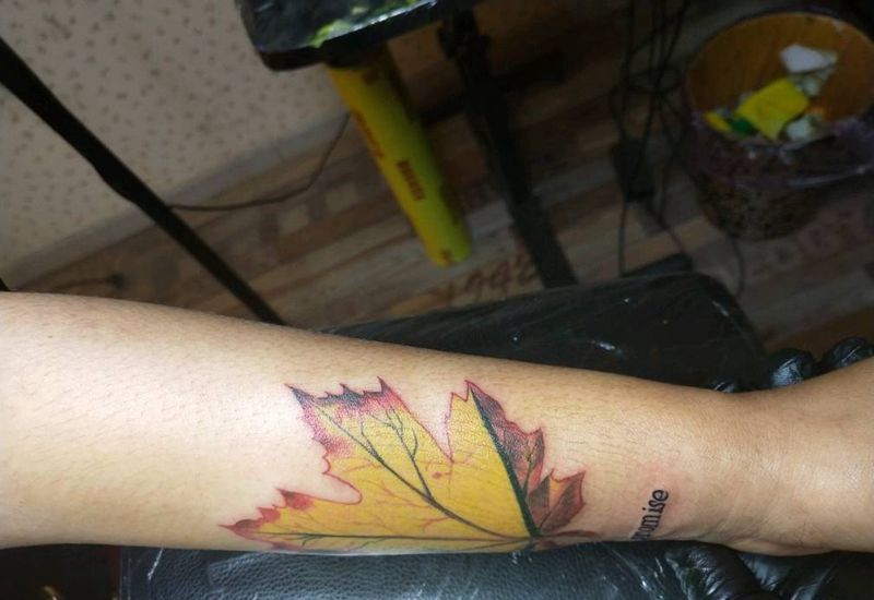 2018作品,枫叶纹身图片_手部彩色纹身图案