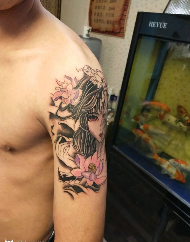 2018年作品,古风美女纹身图片_肩部手臂新传统古风纹身图案