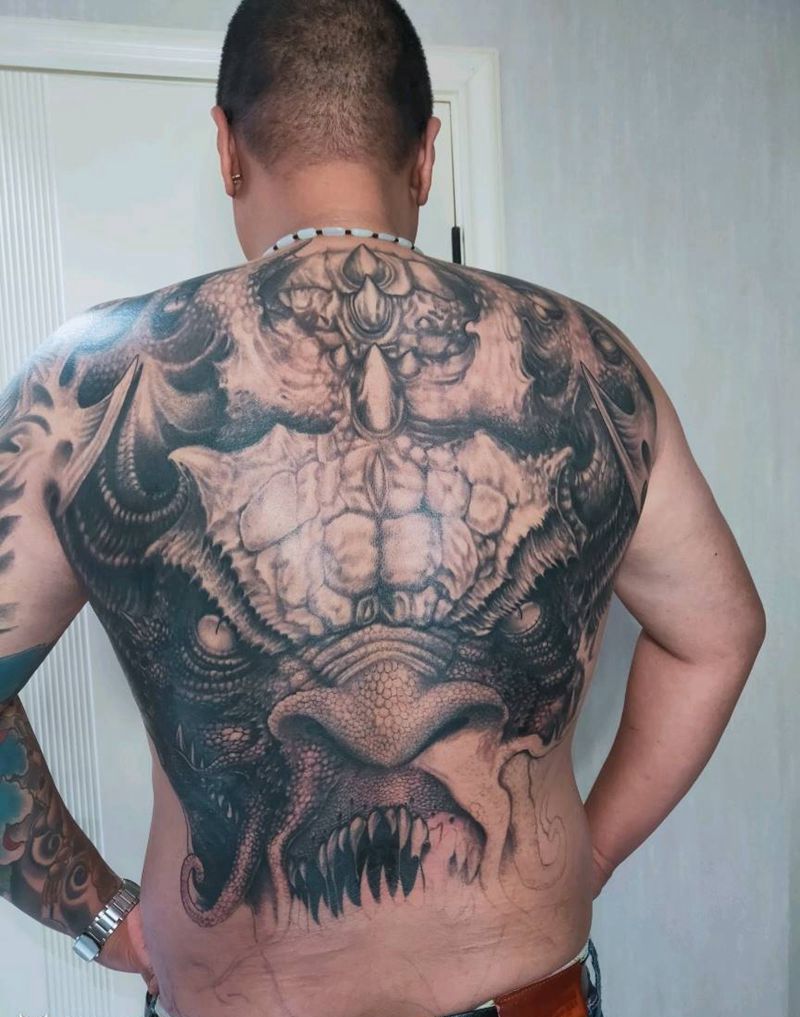 当前位置: 首页 >北京市纹身店-小松刺青工作室纹身图案>满背龙威纹身图片_新传统欧美写实纹身图案