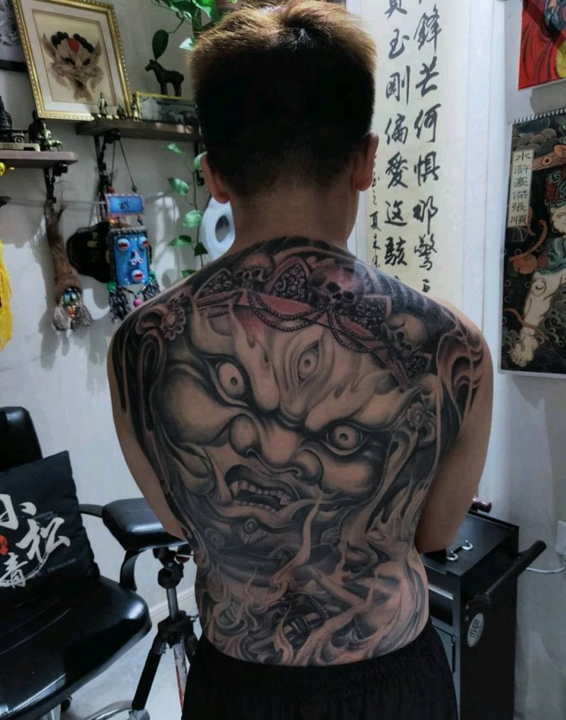 黑灰满背纹身图案