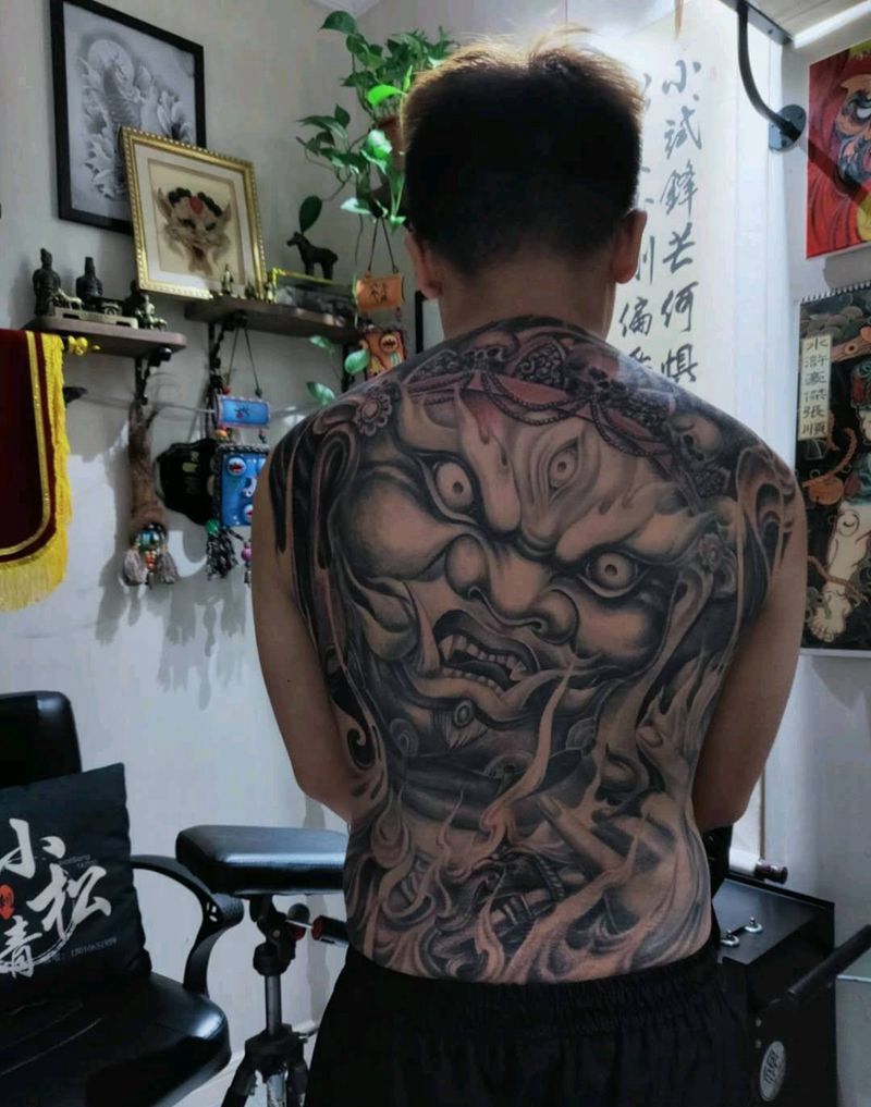 黑灰满背纹身图案