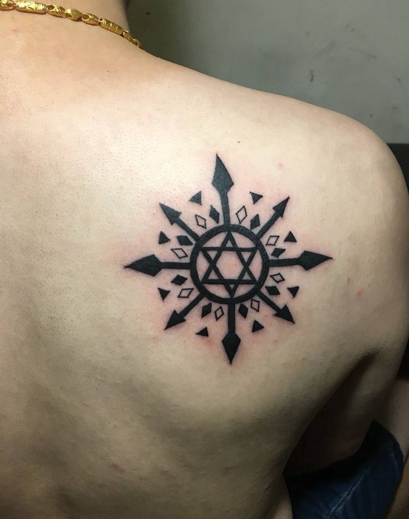 • 纹身吧推荐的披肩图腾半胛纹身图案作品展示