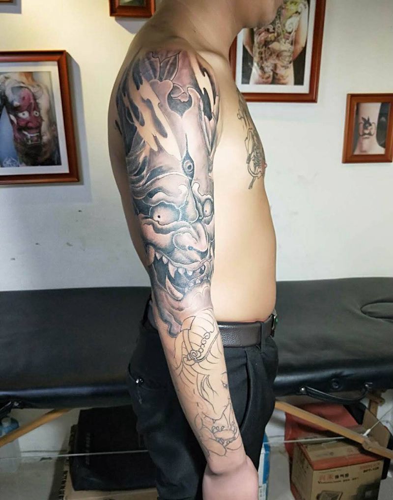 当前位置: 首页 >北京市纹身店-原宿刺青纹身图案>般若艺妓花臂纹身图片_