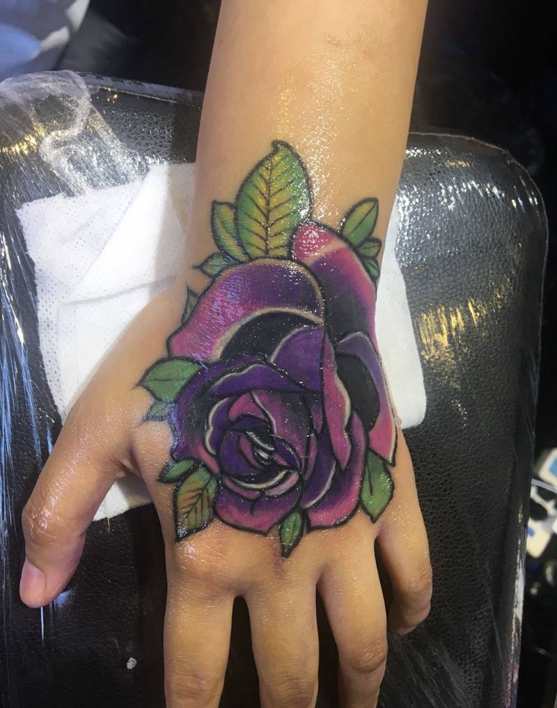 • 手背潮流时尚的玫瑰花眼睛纹身图案