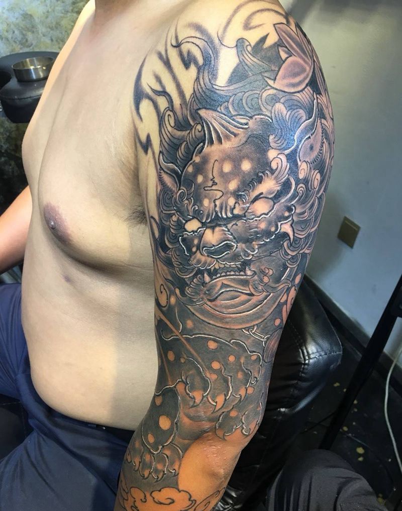当前位置: 首页 >北京市纹身店-原宿刺青纹身图案>唐狮七分袖,未完!纹身图片_