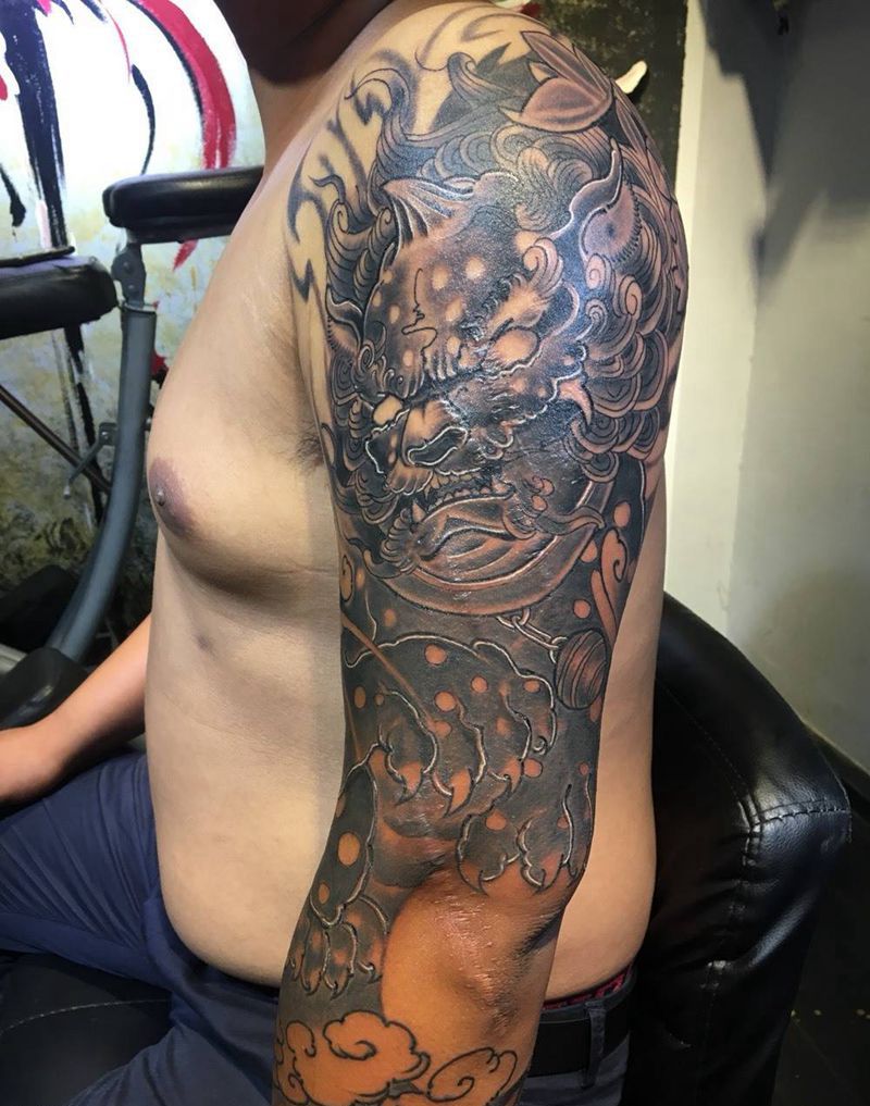 当前位置: 首页 >北京市纹身店-原宿刺青纹身图案>唐狮七分袖,未完!纹身图片_