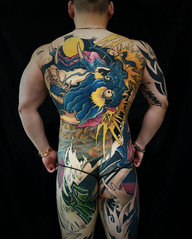 黑灰满背纹身图案