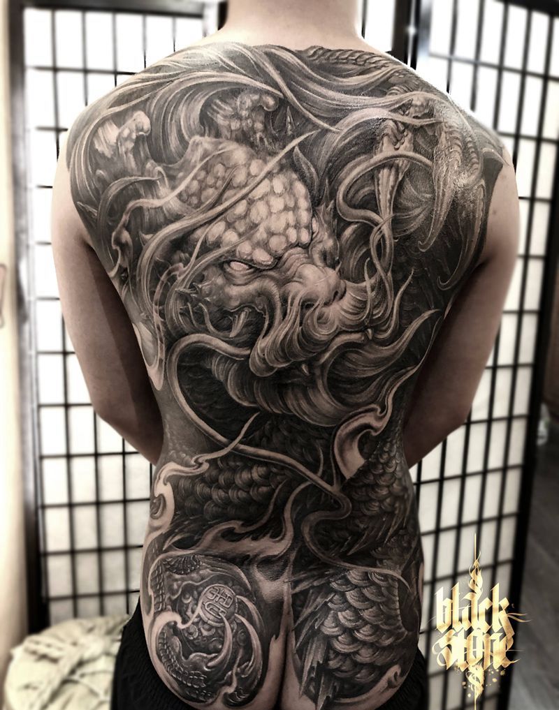 当前位置: 首页 >天津市纹身店-黑石刺青(天津店)纹身图案>苍龙纹身图片_背部新传统欧美写实龙纹身图案