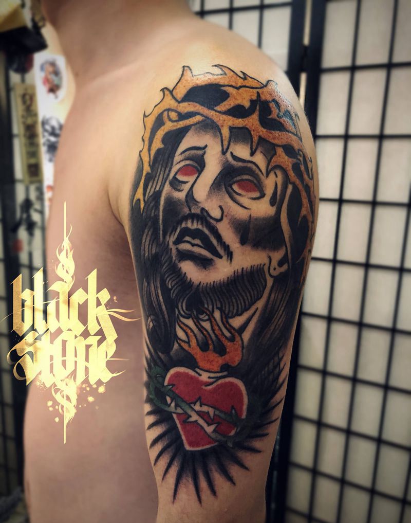 当前位置: 首页 >天津市纹身店-黑石刺青(天津店)纹身图案>Jesus &love纹身图片_手臂Old School耶稣纹身图案
