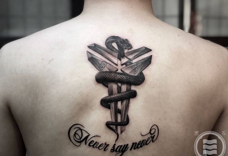 纪念黑曼巴纹身图片_背部花体字欧美写实科比纹身图案