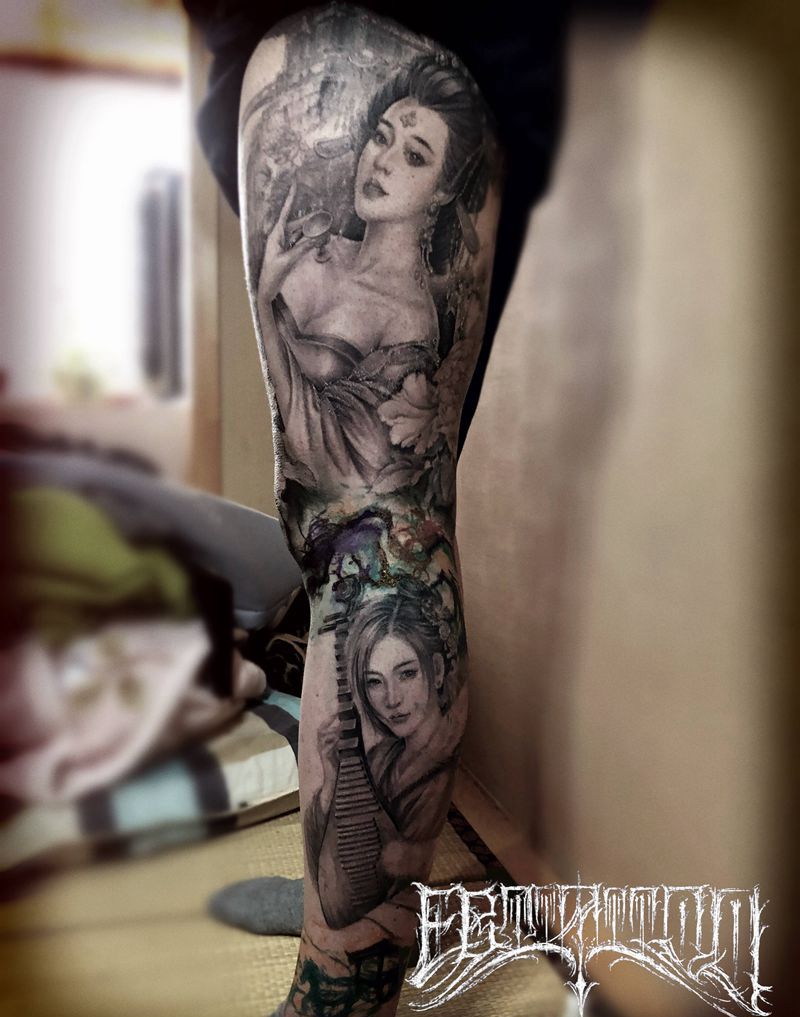 当前位置: 首页 >天津市纹身店-黑石刺青(天津店)纹身图案>四美图纹身图片_腿部臀部新传统欧美写实美女牡丹杨贵妃纹身图案