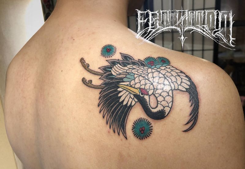 当前位置: 首页 >天津市纹身店-黑石刺青(天津店)纹身图案>鹤舞纹身图片_手臂肩部New SchoolOld School鹤日式纹身图案