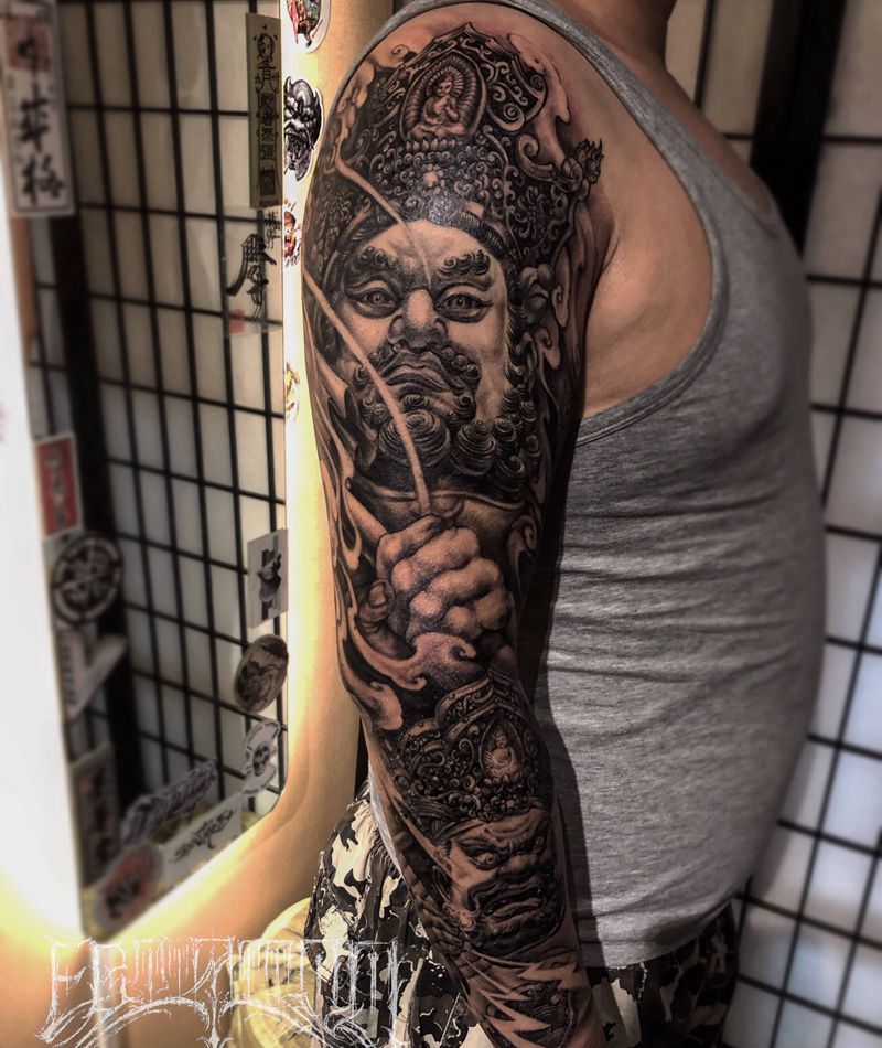 大梵天2纹身图片_手臂新传统欧美写实四大天王纹身图案