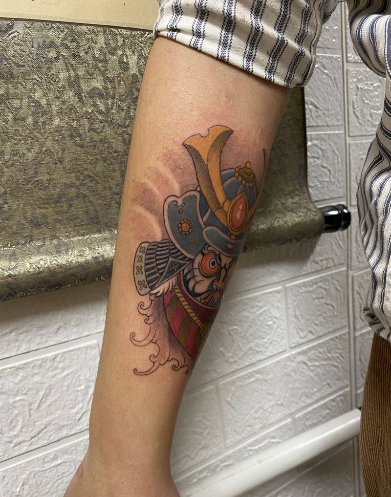 当前位置: 首页 >天津市纹身店-尚纹画专业刺青纹身图案>达摩武士蛋纹身图片_手臂新传统纹身图案