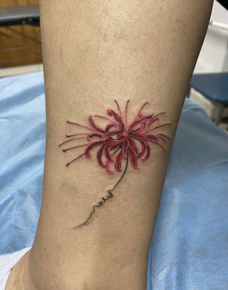 迷你版彼岸花纹身图片_腿部新传统纹身图案