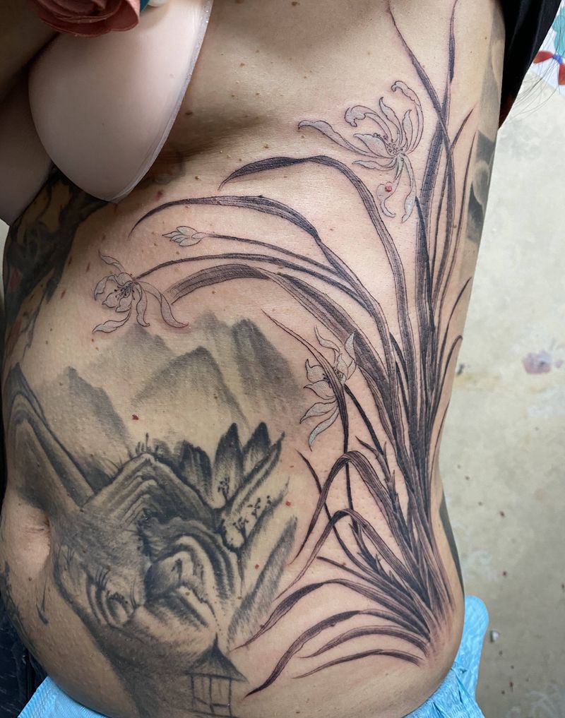 当前位置: 首页 >天津市纹身店-尚纹画专业刺青纹身图案>兰花纹身图片_腰部新传统纹身图案