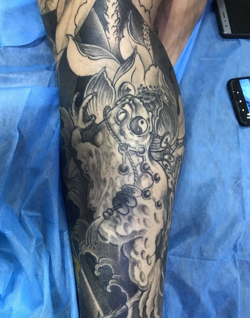 • T网红王老大花腿龙纹身图片_腿部新传统纹身图案