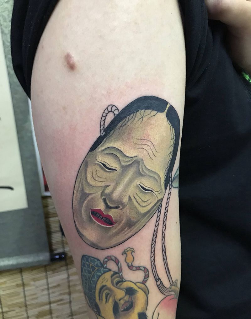 当前位置: 首页 >天津市纹身店-尚纹画专业刺青纹身图案>能面。高难度色系纹身图片_手臂新传统纹身图案