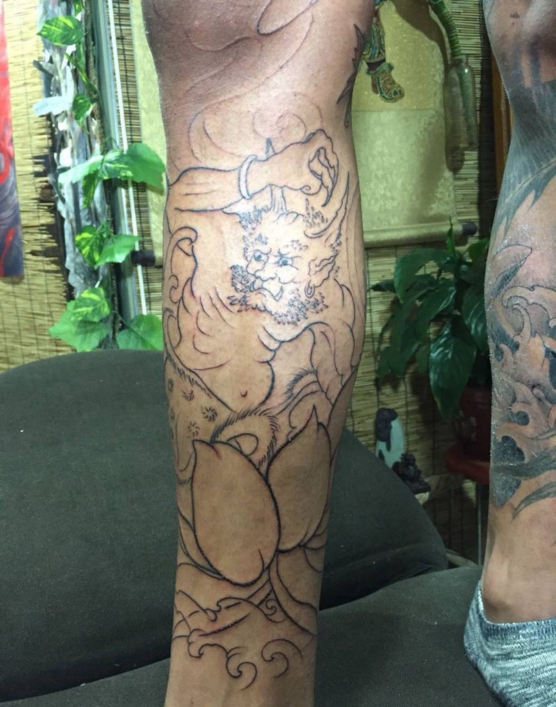 • T网红王老大花腿龙纹身图片_腿部新传统纹身图案