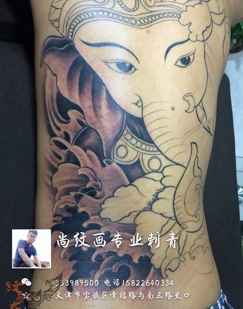 当前位置: 首页 >天津市纹身店-尚纹画专业刺青纹身图案>象神纹身图片_背部传统宗教纹身图案