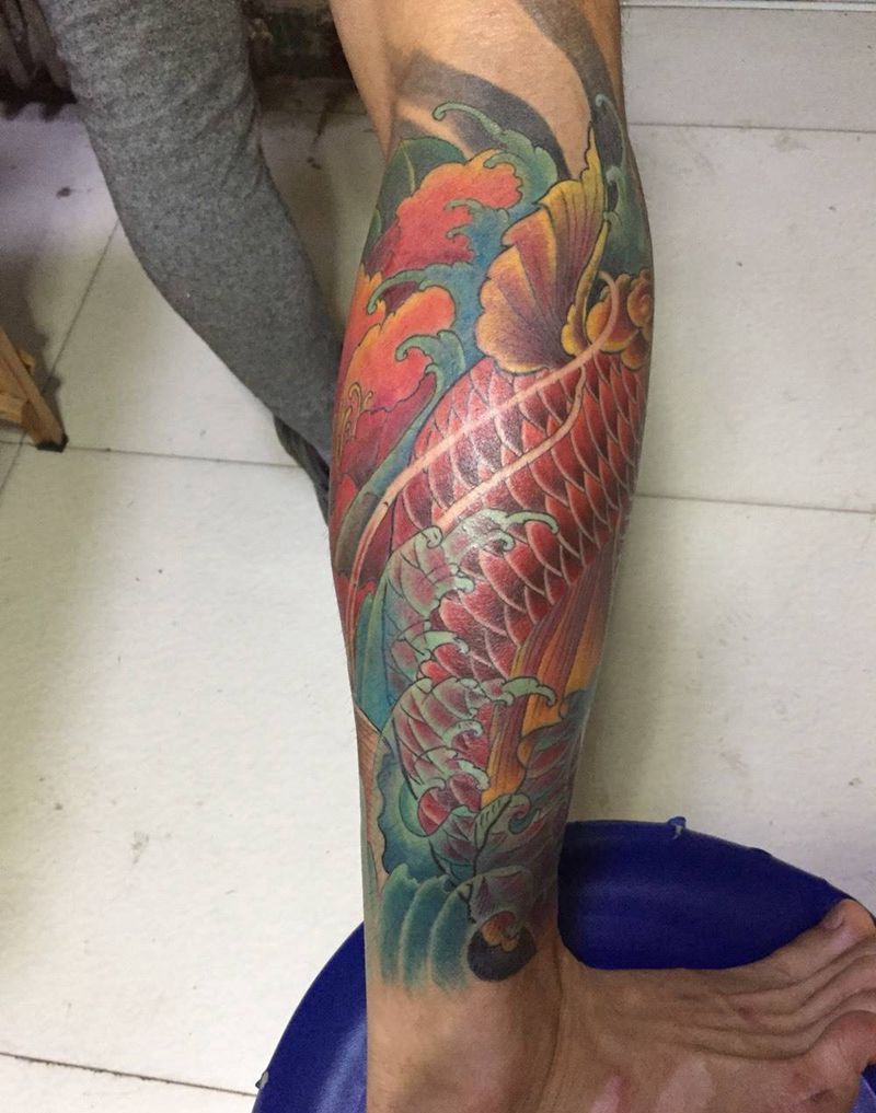 • T网红王老大花腿龙纹身图片_腿部新传统纹身图案