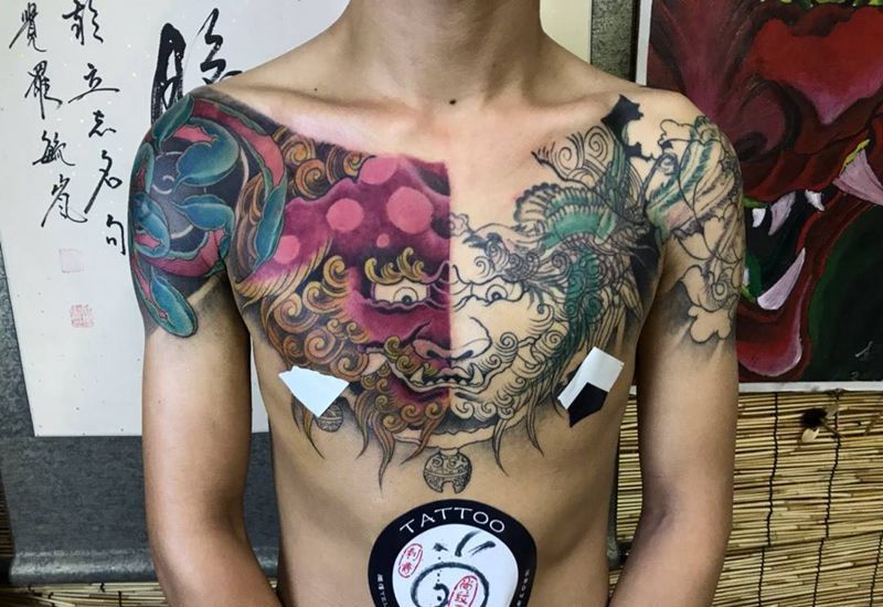 当前位置: 首页 >天津市纹身店-尚纹画专业刺青纹身图案>唐狮子遮盖。纹身图片_