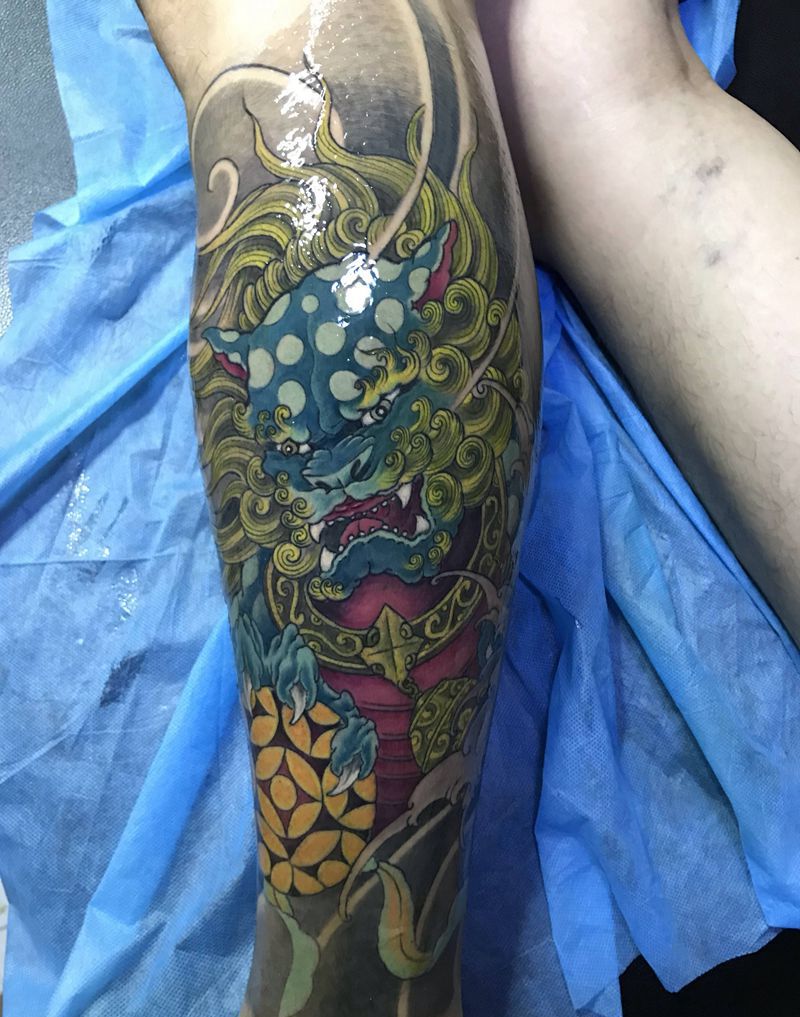 • T网红王老大花腿龙纹身图片_腿部新传统纹身图案