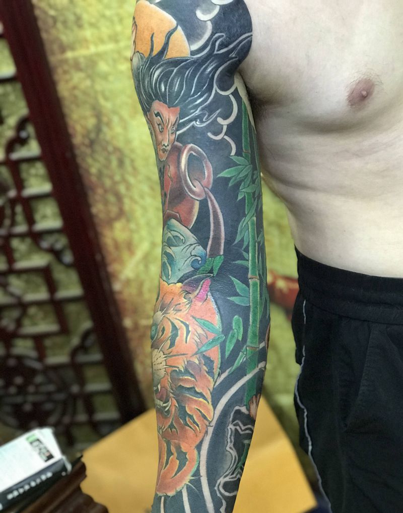当前位置: 首页 >天津市纹身店-天津吴建刺青纹身图案>(武松打虎)修改作品纹身图片_手臂老传统纹身图案