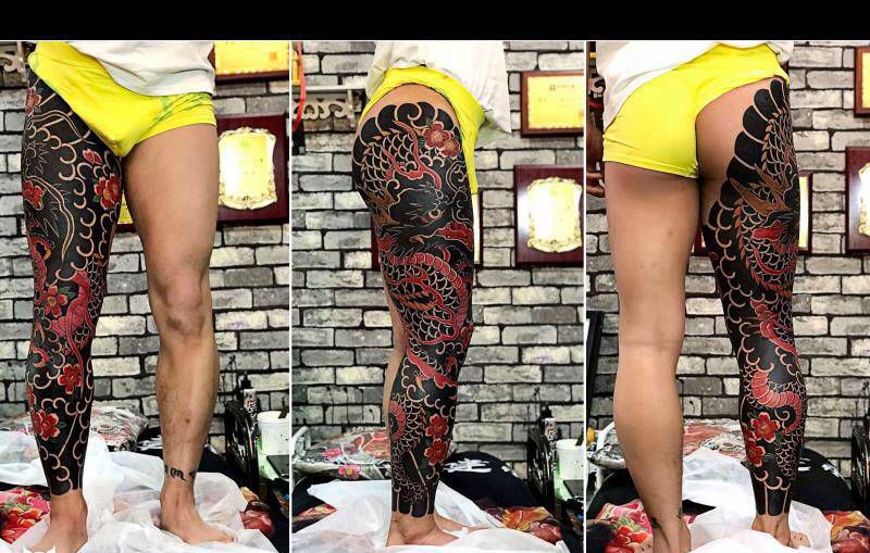 • T网红王老大花腿龙纹身图片_腿部新传统纹身图案
