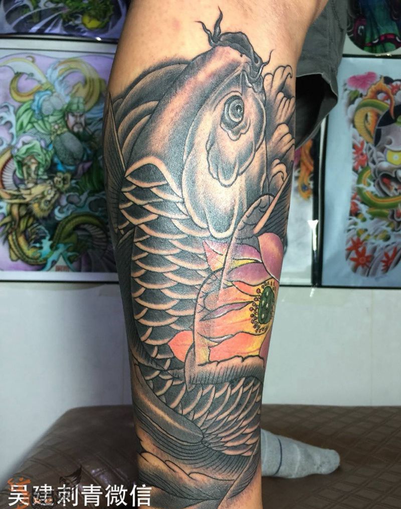 • T网红王老大花腿龙纹身图片_腿部新传统纹身图案