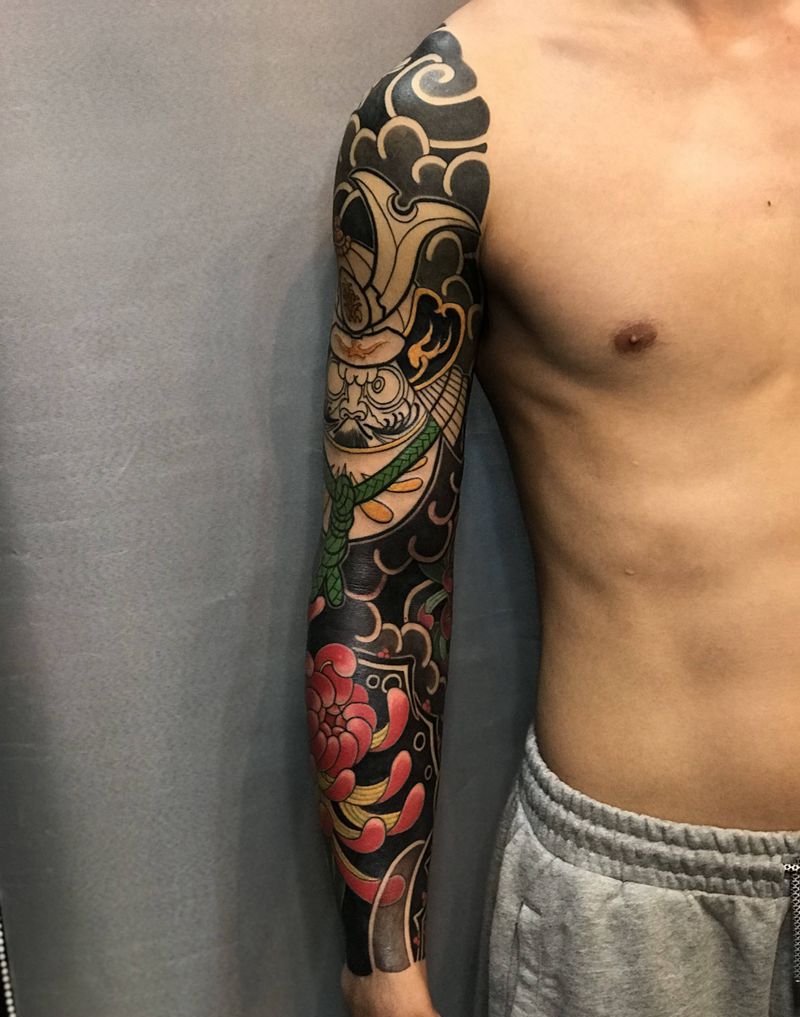 当前位置: 首页 >天津市纹身店-天津吴建刺青纹身图案>达摩蛋纹身图片_手臂老传统纹身图案