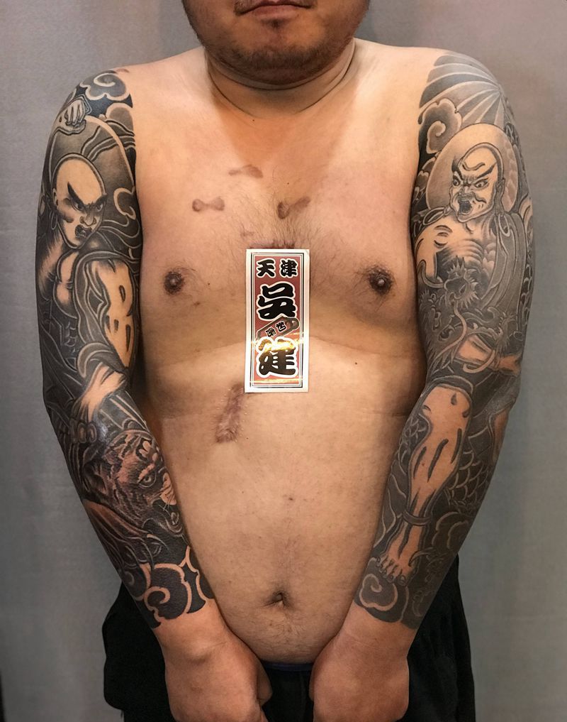 当前位置: 首页 >天津市纹身店-天津吴建刺青纹身图案>降龙伏虎纹身图片_手臂老传统纹身图案