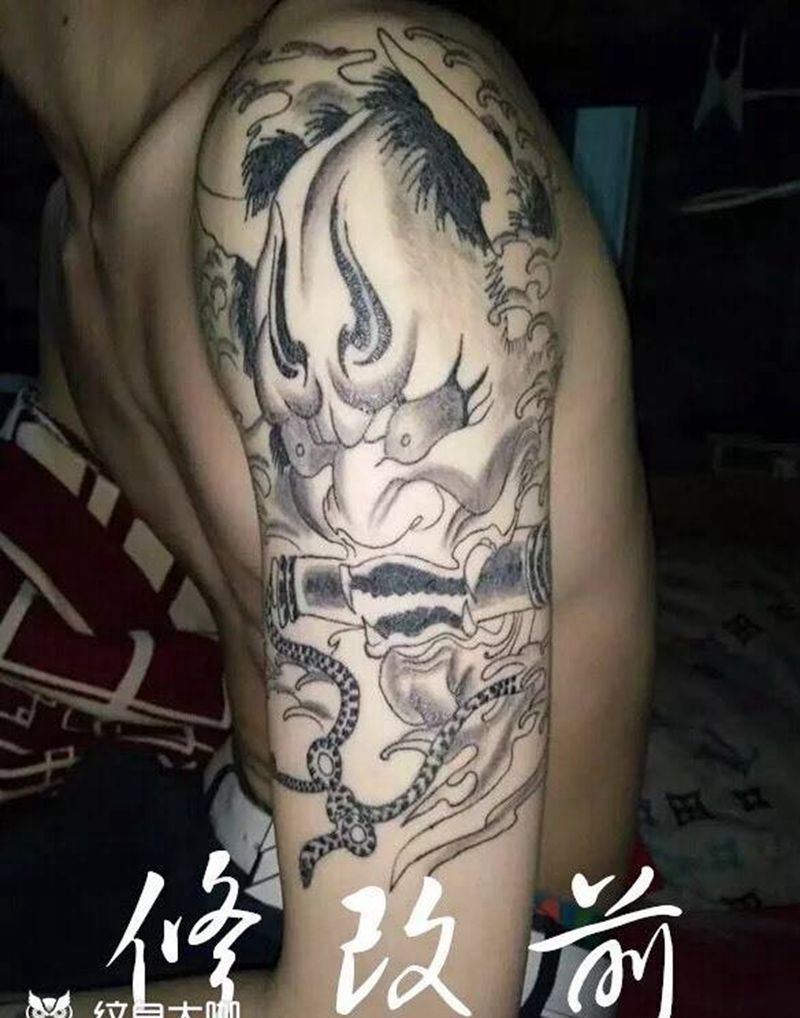 黑灰满背纹身图案