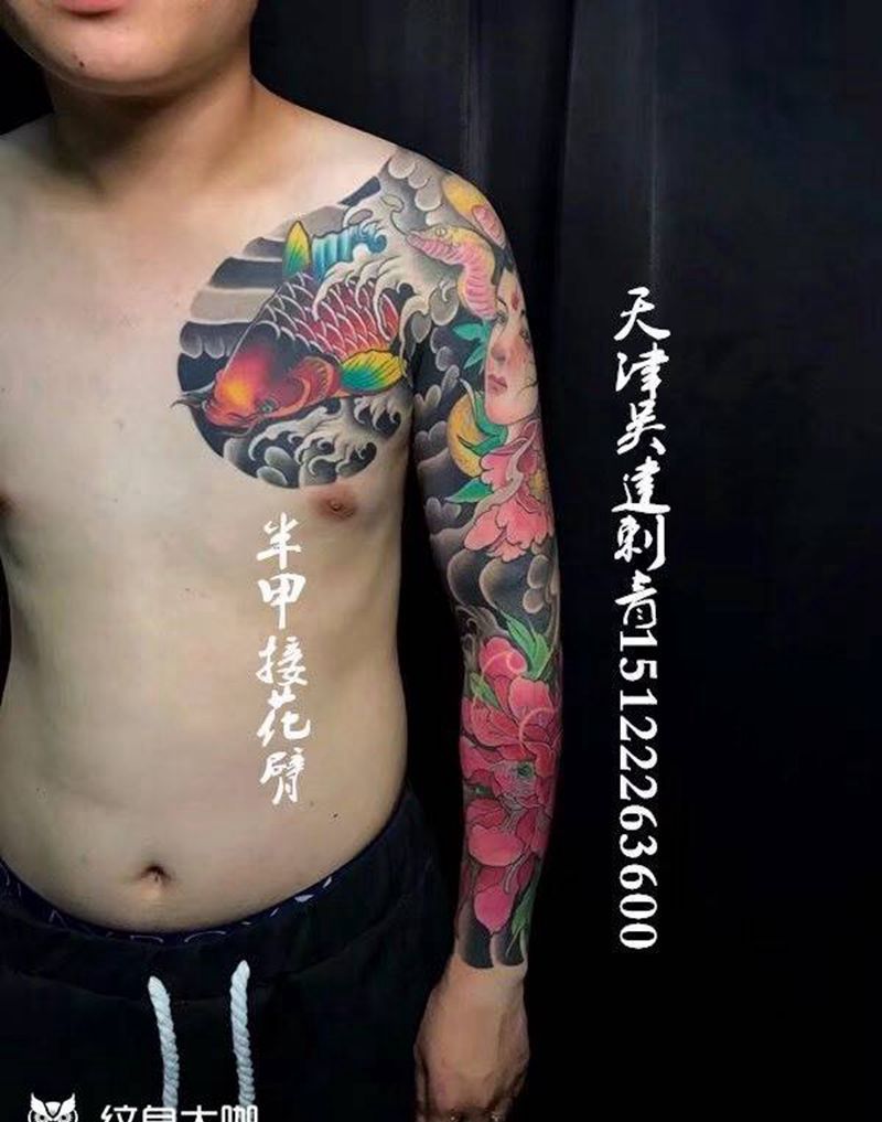 当前位置: 首页 >天津市纹身店-天津吴建刺青纹身图案>半甲接花臂纹身图片_