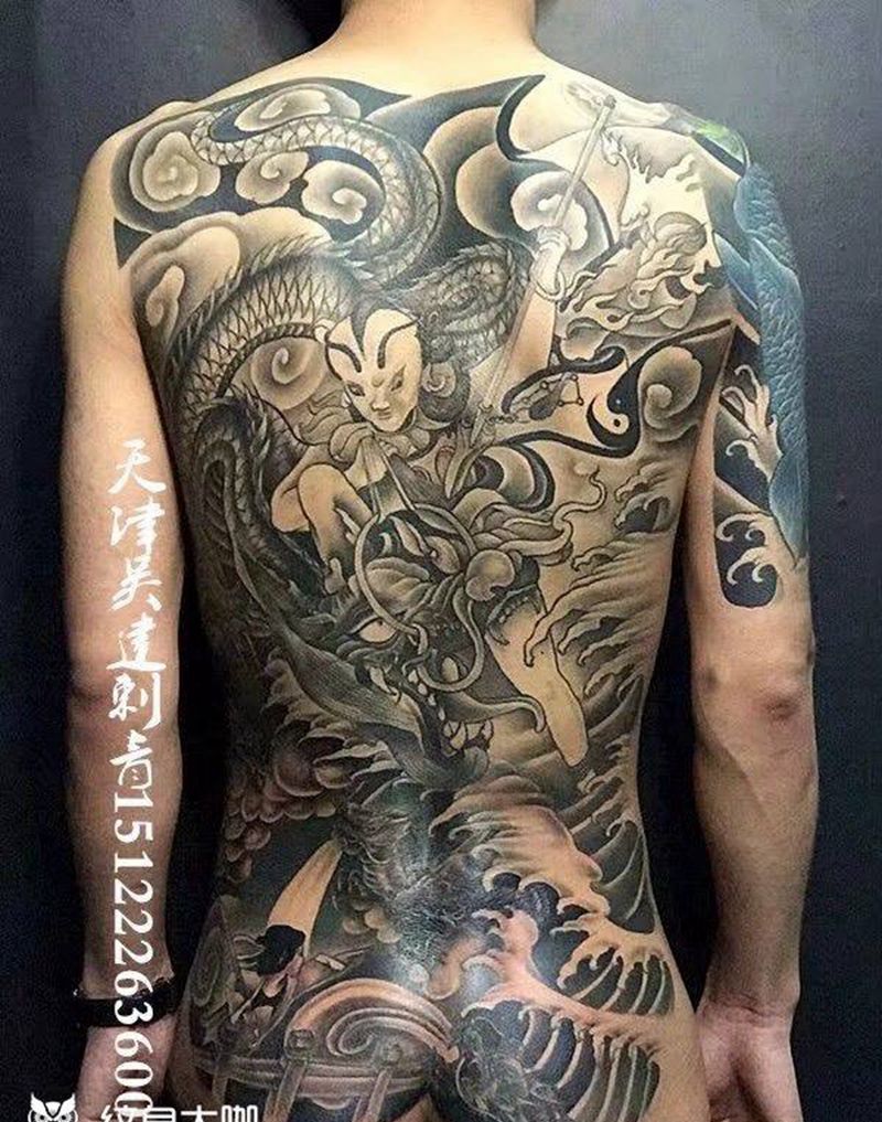 黑灰满背纹身图案