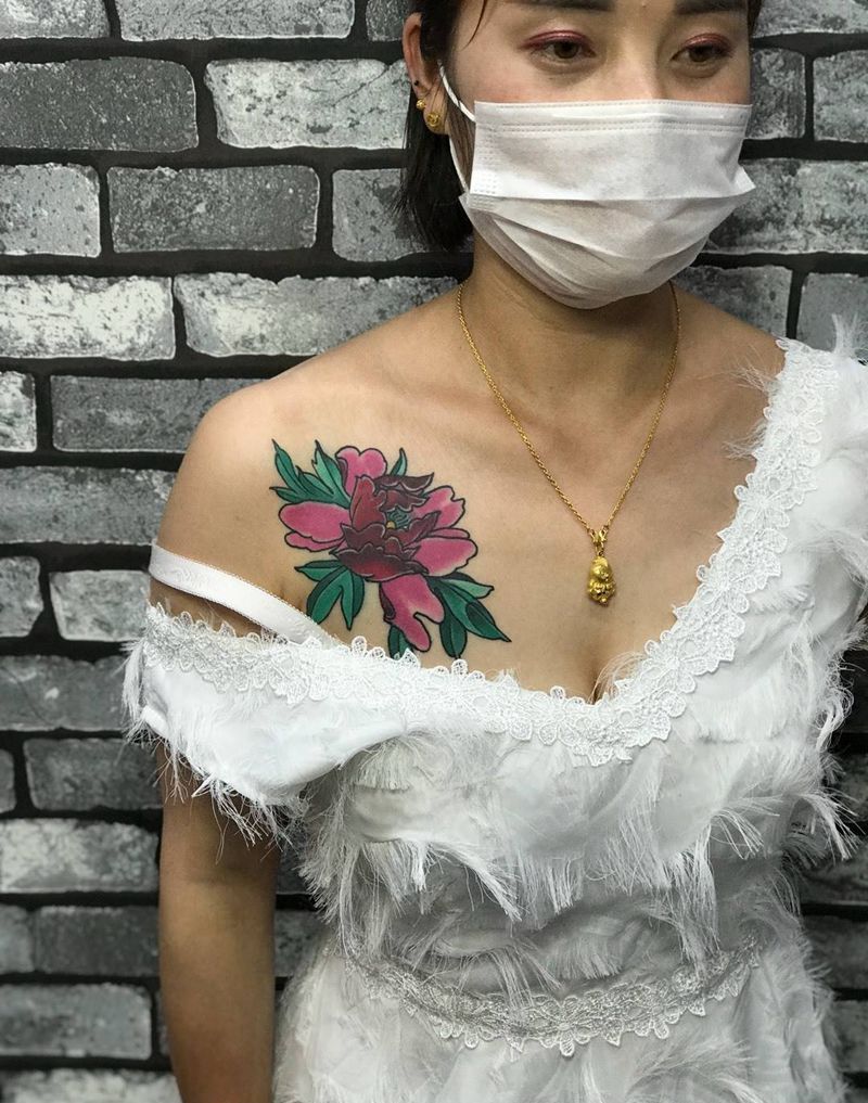 • 女性大花胸纹身_43张霸气漂亮的女性大花胸纹身图案作品