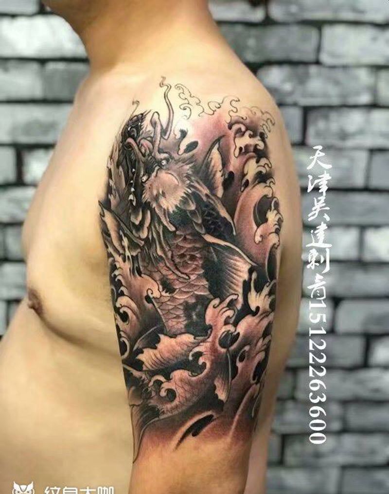 • T网红王老大花腿龙纹身图片_腿部新传统纹身图案